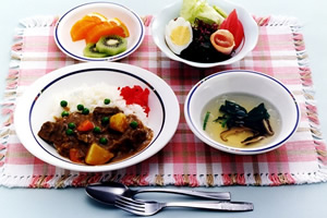マニュアルに基づいた調理時間、温度の設定による調理方法で、いつでも美味しい食事を提供いたします。現地調理を基本とする「出来たて」にこだわった調理方法にてご提供いたします。