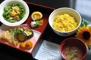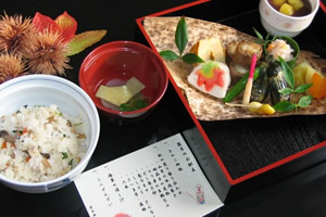 ・きのこ御飯・秋の実り盛り合わせ・山芋の牛肉巻